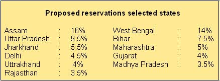 • Since Muslims constitute about 14.5 % (2001 census) of the population and about 10% of the Muslims may have been covered under OBC at the national level also, a separate quota of 6% for Muslims (with means-test exclusion clause) must be demanded at the national level.